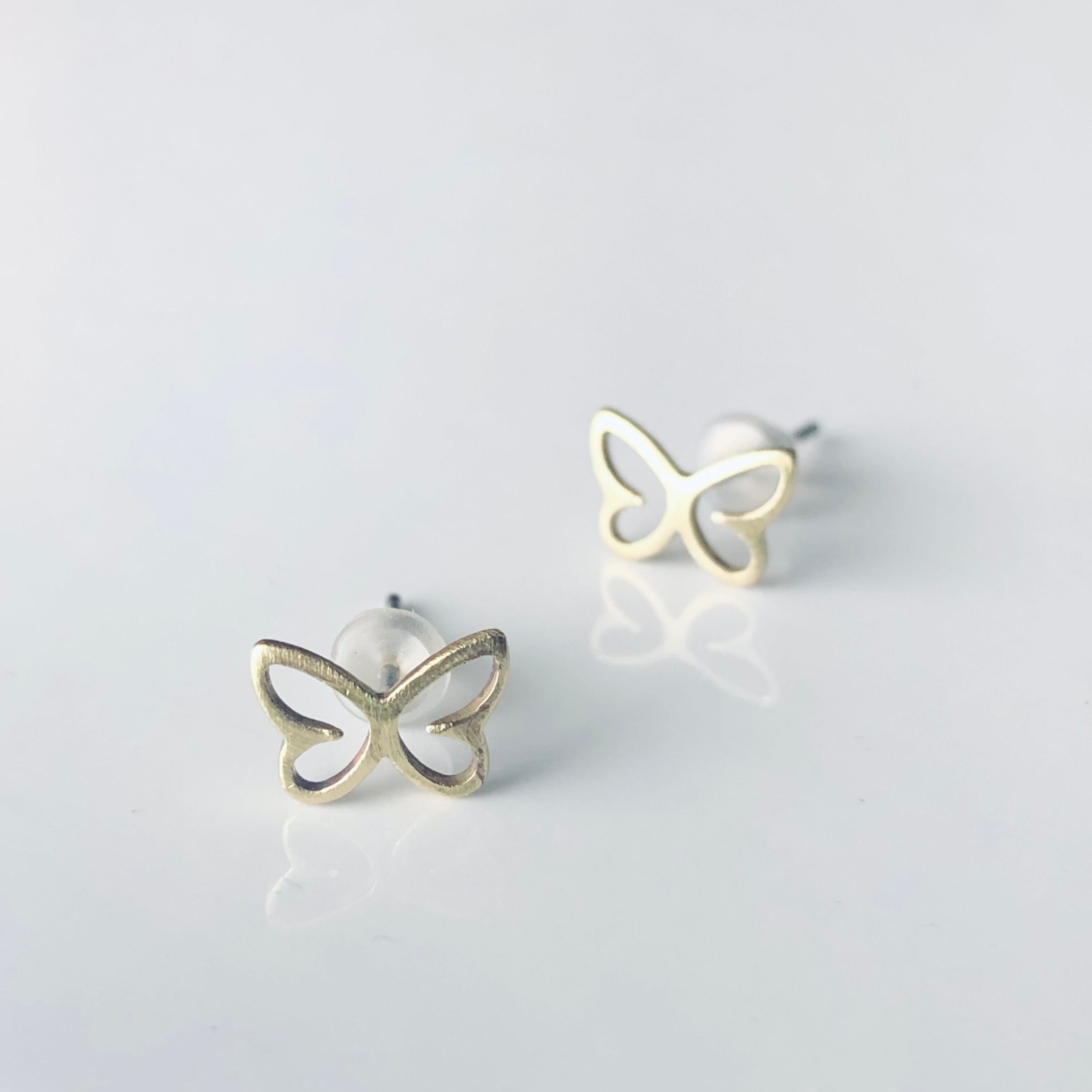 ◻︎ちいさな蝶がモチーフのピアス。小さな蝶のデザインは、華やかさと可愛さを兼ね備えており、どんなスタイルにもアレンジしやすいアクセサリーです。